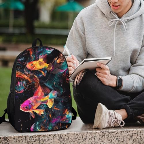 Colorful Betta Fish Unisex Backpack 17" Casual Daypacks Simple Shoulders Bag for Camping Hiking Travel Gear 3
