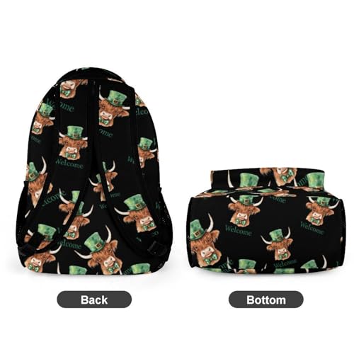Welcome St Patricks Day Higndland Cow Travel Backpack Casual Daypack Shoulder Bag with Adjustable Shoulder Straps 4
