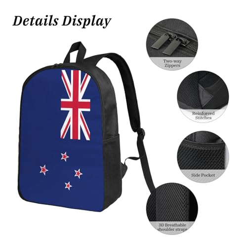 • Laptop Compatible of Backpack: The Lightweight New Zealand Flag print Bookbag includes a spacious compartment that can accommodate a 15-inch laptop, making it suitable for both work and leisure activities.