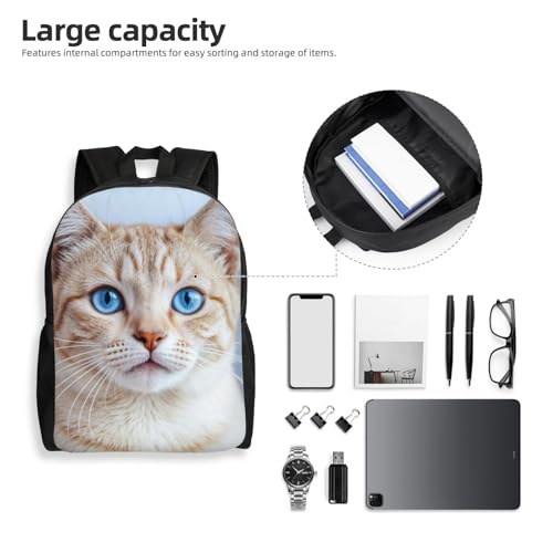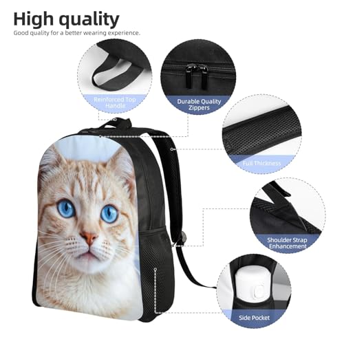 HOT ! High Capacity Close up Beautiful Cat with Striking Blue Eyes Orange Fur Backpack Multipurpose Bag Double Unisex 16 in