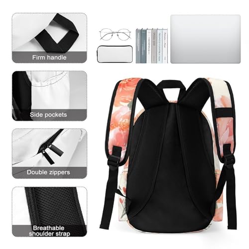 Peach Peony Printed Backpack Water-Resistant Pack Bulk Backpack Lightweight Travel Backpack 3