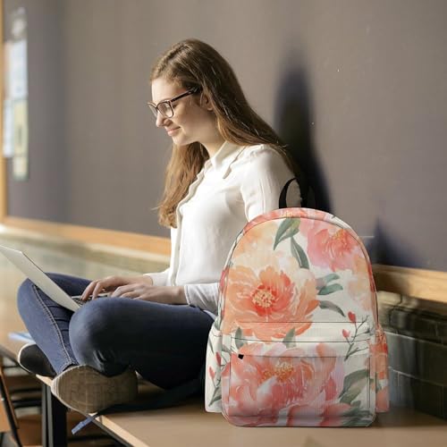 Peach Peony Printed Backpack Water-Resistant Pack Bulk Backpack Lightweight Travel Backpack 7