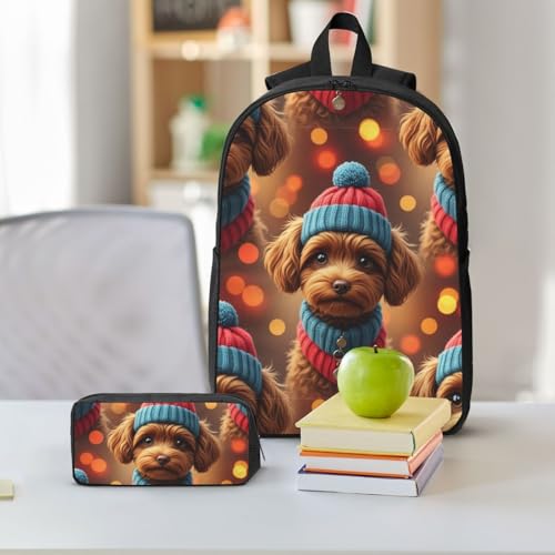 HOT ! Backpack 3 Pcs Set For Unisex Bag For Unisex(for Cute Puppy Poodle)