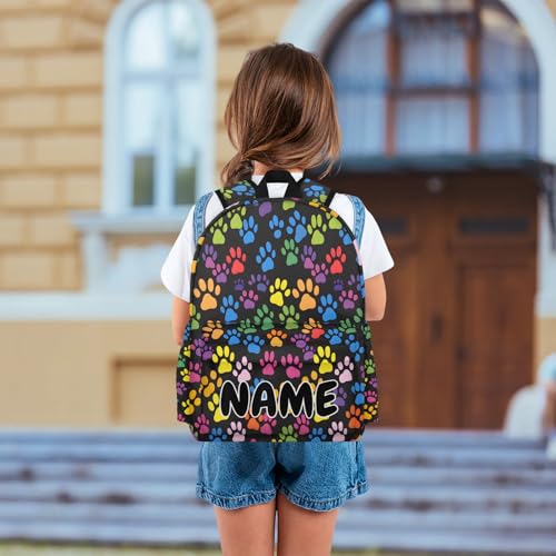 Personalized Dog Travel Backpack for Men Women, 16 Inch Colorful Paws Waterproof Lightweight Custom Backpack with Name for Work Travel Hiking 5