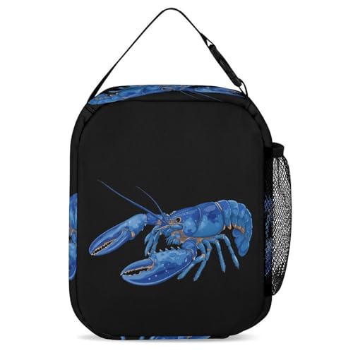 Hand-Drawn Blue Lobsters Travel Backpack Lunch Box Pencil Case 3Pcs Set for Men Women Office Outing University 6