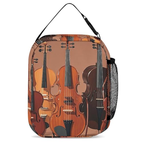3-in-1 Backpack Set with Lunch Bag & Pencil Case, Monochrome String Instruments Backpack with Front Pocket, Insulated Lunch Tote, Large Capacity Pencil Pouch 5