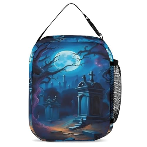 HOT ! 3Pcs Backpack Sets Moonlit Cemetery Print Travel Daypack 3 in 1 Lightweight Backpack Set with Lunch Bag And Cosmetic Bag