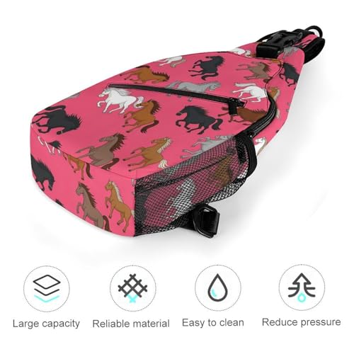 Lightweight Chest Shoulder Backpack, Chest Bag, Fashion Day Pack For Women And Men Horses in Pink 2