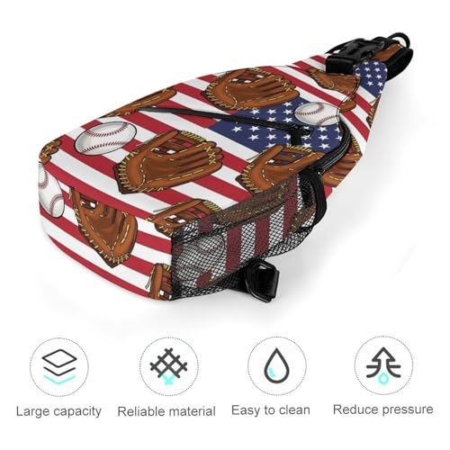 Fashion Traveling Running Casual Chest Bag, Dress Decor Sling Backpack, Shoulder Bag Casual Day Pack American Flag Baseball Art 4