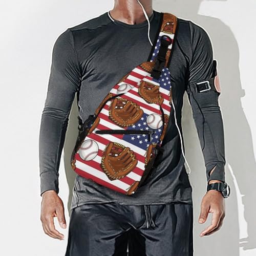 HOT ! Fashion Traveling Running Casual Chest Bag, Dress Decor Sling Backpack, Shoulder Bag Casual Day Pack American Flag Baseball Art