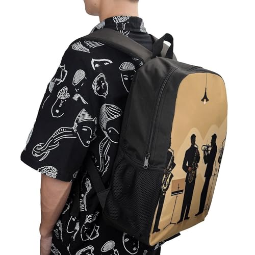 HOT ! Heavy-Duty 17 Inch Backpack with Side Pockets, A Silhouette of A Jazz Quartet Print Durable Backpack Ideal for Travel, And Outdoor Adventures