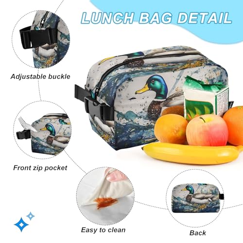 Travel Backpack Lunch Bag Set for Hiking Picnic, Backpacks with Insulated Lunch Box Wild Duck Painting Print 5