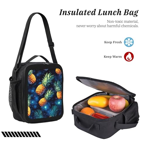 Galaxy Fruit Pineapple 3 Pcs 17 Inches Backpack Set with Insulated Lunch Bag And Pencil Pouch Large Back Pack for Men Women Lunchbox Pencil Case Waterproof Backpacks Lunch Box 3 Piece Daypacks 4