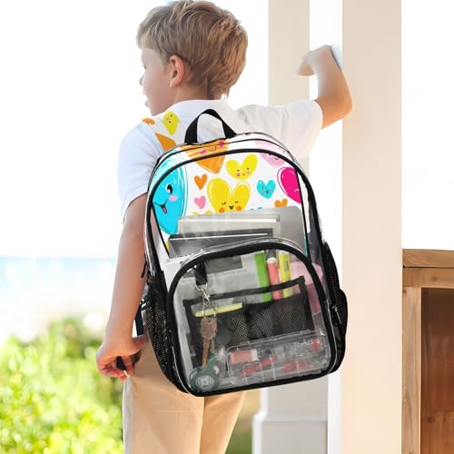 Colorful Cartoon Hearts Faces Clear Backpack Women Cute Boys Backpacks for Girls See through Approved Bag 1