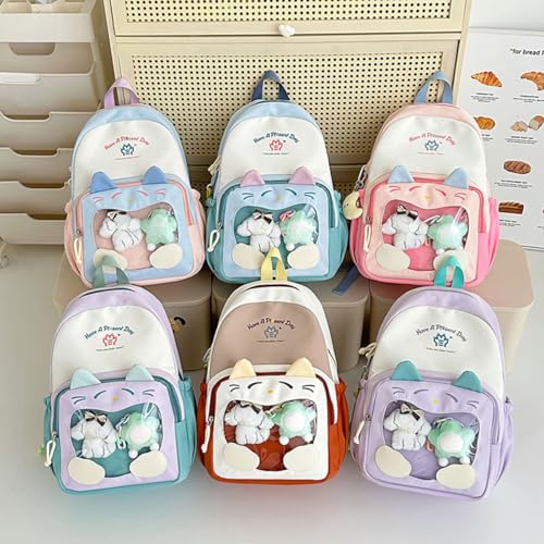 HOT ! Kawaii Color Blocking Backpack with Case and Charm for Women Cute Large Capacity Korean Travel Bag Y2K Ita Bag Daypack (Khaki)