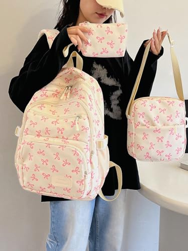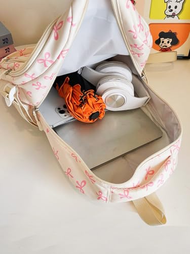 • 【Functional Structure】This coquette backpack features a spacious main pocket for books, lunch, binders, and a large laptop compartment. Front pockets store pens, keys, wallets, while side pockets fit water bottles or umbrellas
