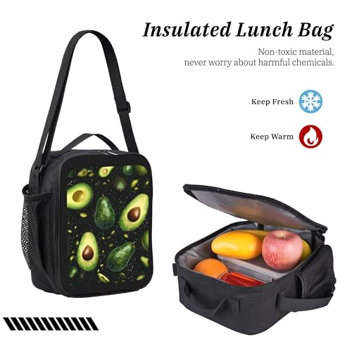 Fruit Green Avocado 3 Pcs 17 Inches Backpack Set with Insulated Lunch Bag And Pencil Pouch Large Back Pack for Men Women Lunchbox Pencil Case Waterproof Backpacks Lunch Box 3 Piece Daypacks 4