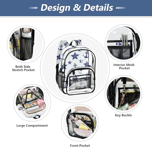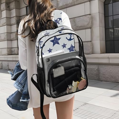 Navy Blue Anchor Pentacle Beige Clear Backpack Women Cute Girls Backpack Kids Boys Approved Shoulder Bag 4