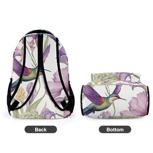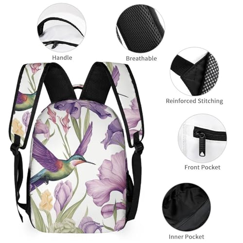 HOT ! Hummingbirds Irises Flowers Backpack for Men Women, Durable Small Backpack Casual Lightweight Daypack for Travel Bag
