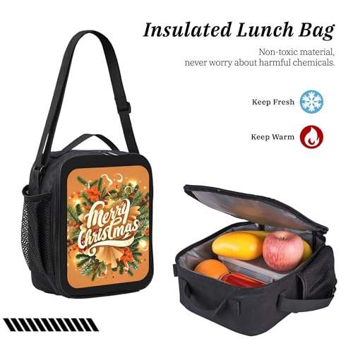 HOT ! Christmas Bells Christmas Tree 3 Pcs 17 Inches Backpack Set with Insulated Lunch Bag And Pencil Pouch Large Back Pack for Men Women Lunchbox Pencil Case Waterproof Backpacks Lunch Box 3 Piece Daypacks