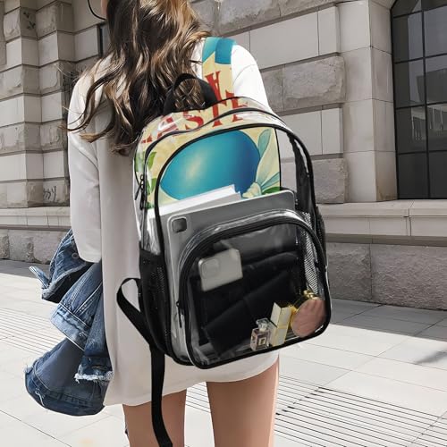 Travel Clear Bags for Women Floral Easter Egg Girls Backpack Kids Boys Large Plastic Approved Bag 1
