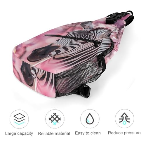 HOT ! Zebra in Cherry Flowers Crossbody Sling Backpack Casual Chest Bag Fanny Pack for Women Men Travel Hiking