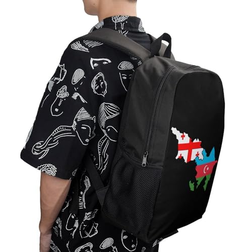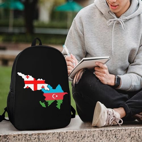 More information about Azerbaijan And Georgia Flag Map Travel Backpack 17 Inch Casual Daypack Shoulder Bag with Adjustable Shoulder Straps