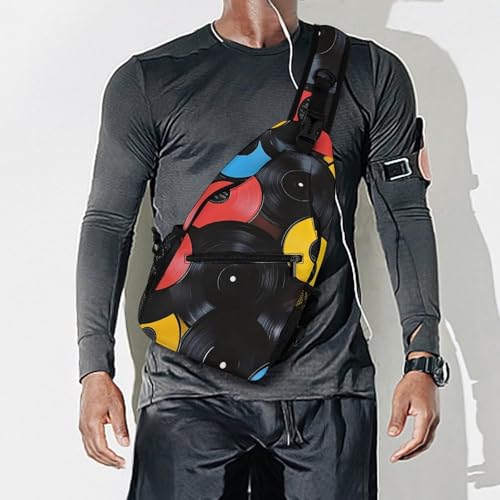 Colorful Vinyl Records Crossbody Sling Backpack Casual Chest Bag Fanny Pack for Women Men Travel Hiking 6