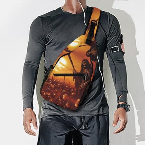 HOT ! Grim Reaper Skeletons Sunset Crossbody Sling Backpack Casual Chest Bag Fanny Pack for Women Men Travel Hiking