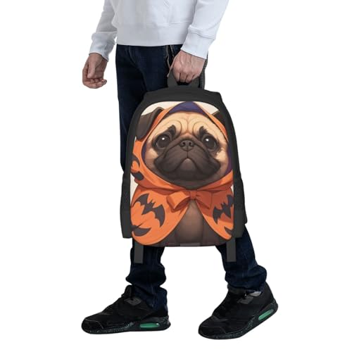 Large Capacity Pug Wearing Halloween Costume Backpack Large Multipurpose Bag Double Zipper Backpack Unisex 17 Inch 7