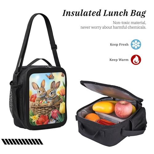 3PCS Backpack for Women Men With Lunch Box Pencil Bag 17 Inch Lightweight Adjustable Strap Back Pack 3 In 1 Set Animal Rabbit Flower Casual Daypack Unisex Fit Travel Work Camping 4