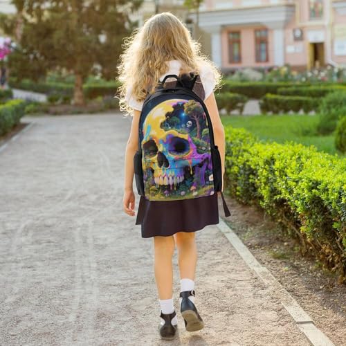 Supdreamc Psychedelic Skull Art Rucksacks Lightweight Multipurpose Anti-Theft Shoulder Bag Big Capacity Traveling & Camping Backpack With Side Pockets 3