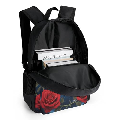 Supdreamc Polyester Daypack Backpack for Climbing Outdoors Running - Big Capacity Multipurpose Anti-Theft Bookbag, Skull And Red Rose Art Travel Hiking & Camping Rucksack 5