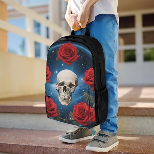 Supdreamc Polyester Daypack Backpack for Climbing Outdoors Running - Big Capacity Multipurpose Anti-Theft Bookbag, Skull And Red Rose Art Travel Hiking & Camping Rucksack 1