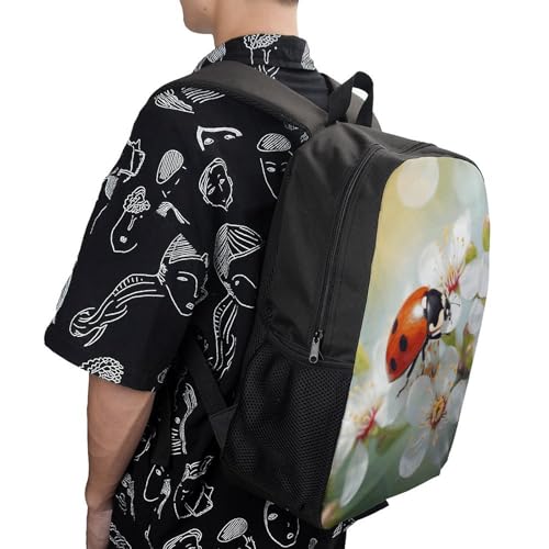 More information about Butterfly Ladybug Flower Backpack - Durable 600D Polyester, 17 Inch Backpack with Ergonomic Adjustable Straps, Lightweight Travel Bag for Men & Women