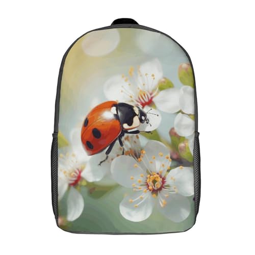 HOT ! Butterfly Ladybug Flower Backpack - Durable 600D Polyester, 17 Inch Backpack with Ergonomic Adjustable Straps, Lightweight Travel Bag for Men & Women