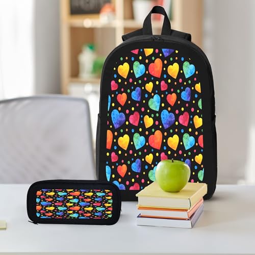 More information about 3PCS Backpack for Women Men With Lunch Box Pencil Bag 17 Inch Lightweight Adjustable Strap Back Pack 3 In 1 Set Colorful Love Design Casual Daypack Unisex Fit Travel Work Camping