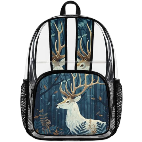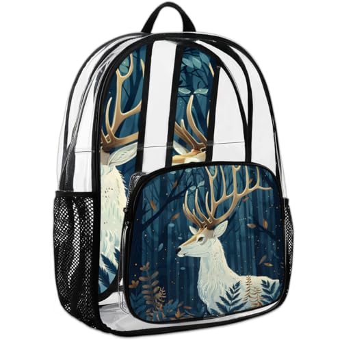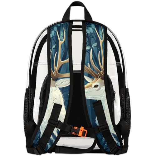 HOT ! Night Deep Woods Deer Clear Backpack Stadium Approved PVC Backpacks for Adults Heavy Duty Clear Bag for Work Security Travel College