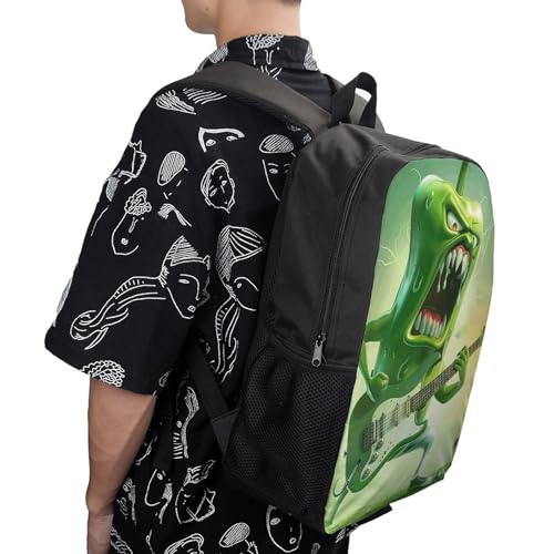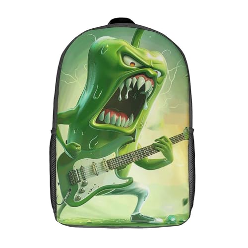 More information about Green Pepper Plays Guitar Backpack - Durable 600D Polyester, 17 Inch Backpack with Ergonomic Adjustable Straps, Lightweight Travel Bag for Men & Women