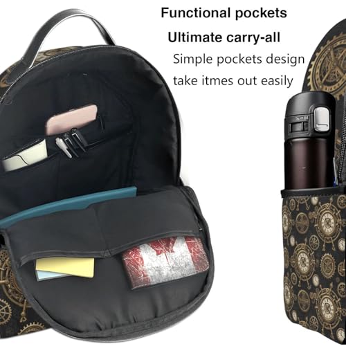Extra Large Travel Backpack, Lightweight Daypack for Men and Women Vintage Clock Steampunk Gears Art Design 1