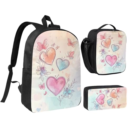 HOT ! Cute Cartoon Heart Backpacks 3 Pcs Casual Multifunction Backpack with Fun Graphic Cartoon Print for Camping Touring