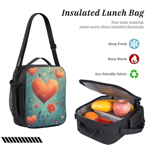 • Reusable lunch bag: three-layer insulated design to keep food fresh. Includes an elastic strap for utensils, one main compartment with 4 inner pockets, a right-side exterior pocket, and an adjustable shoulder strap for easy carrying.