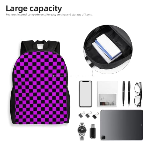 Purple Black Checkered Chessboard Flag Backpack Simple Leisure Travel Backpack Outgoing Daypack 16 inch 2