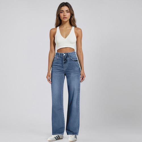 More information about Wide Leg Jeans Woman Trendy High Waisted Baggy Jeans Stretchy Pull On Straight Leg Mom Jean Casual Denim Pants