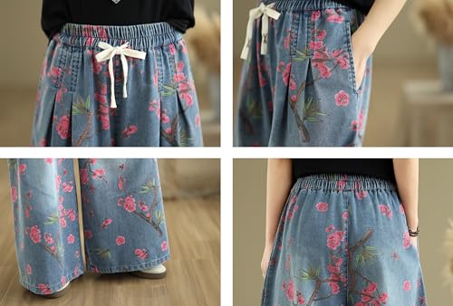 LAI MENG FIVE CATS Women's Casul Baggy Jeans Drawstring Elastic Waist Wide Leg Loose Denim Pants 5