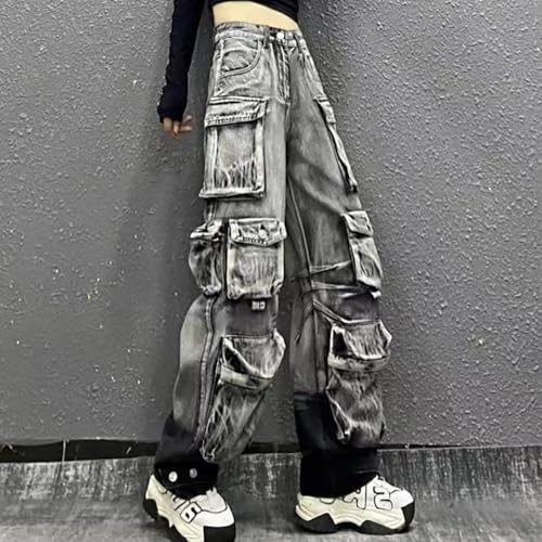 HOT ! Gothic Y2K Streetwear Women's Cargo Jeans - Multi-Pocket Gradient Denim Pants, Hip-Hop Fashion