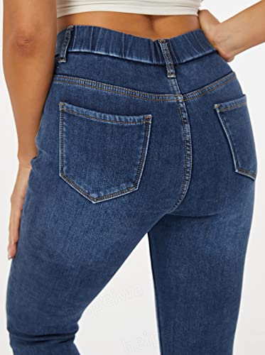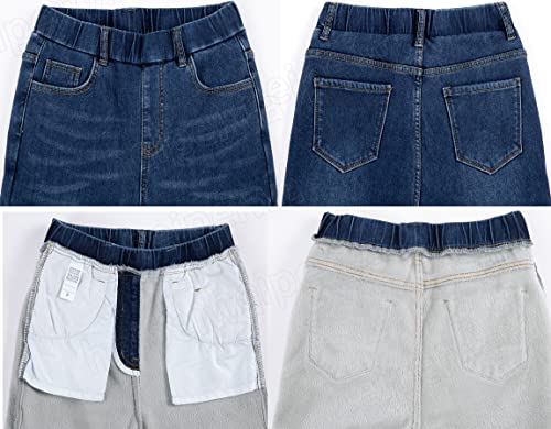 • Elastic Waist Pull on Easy Into Tummy Control Jeans for Winter Women Fleece Lined Skinny Stretch Jeans Flannel Jeggings Cloth Outfit Slim Fit Pants
