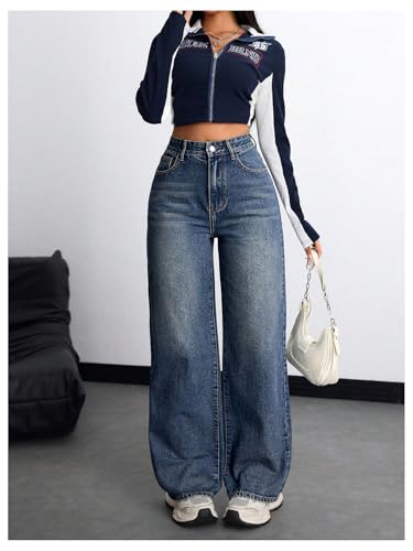 HOT ! SOLY HUX Women's High Waisted Wide Leg Baggy Jeans Casual Loose Denim Pants