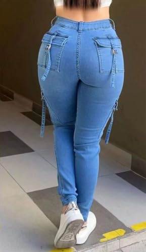 HOT ! Women Slim Fit Stretch Cargo Denim Pants High Waist Washed Vintage Work Casual with Flaps 6 Pockets
