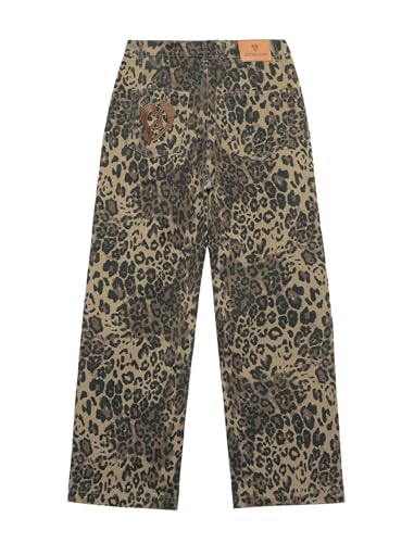 HOT ! Aelfric Eden Leopard Print Jeans for Women Cheetah Print Pants Straight Leg Denim(A Size 1-2 Larger is Recommended)